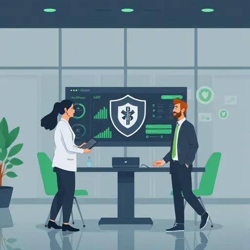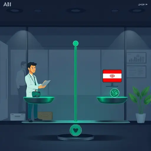 abstract illustration of pros and cons balance scale for medical AI, shield and stethoscope icons, dark theme, green accent #94d3a2, clean, text-free