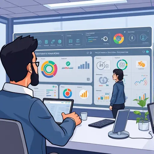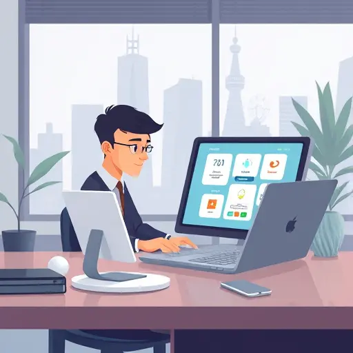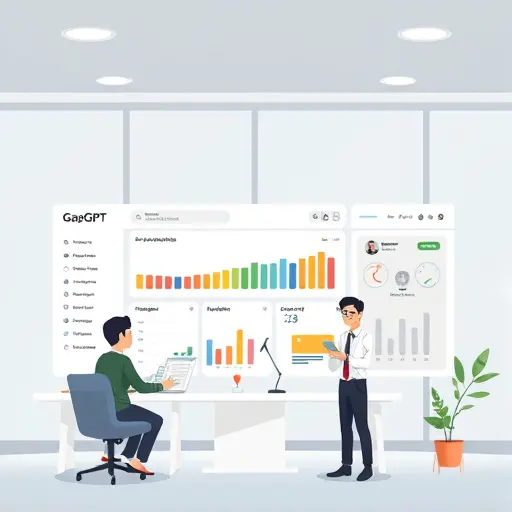 modern animated scene of users interacting with GapGPT platform on multiple devices (mobile, laptop)