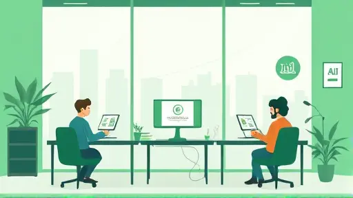cartoon style illustration of an AI summary tool processing long text documents, abstract interface, with technology symbols and green accent colors, text-free and modern look