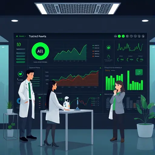 modern illustration of AI analyzing medical lab results, dashboard with charts and lab test icons (CBC, glucose, lipid)
