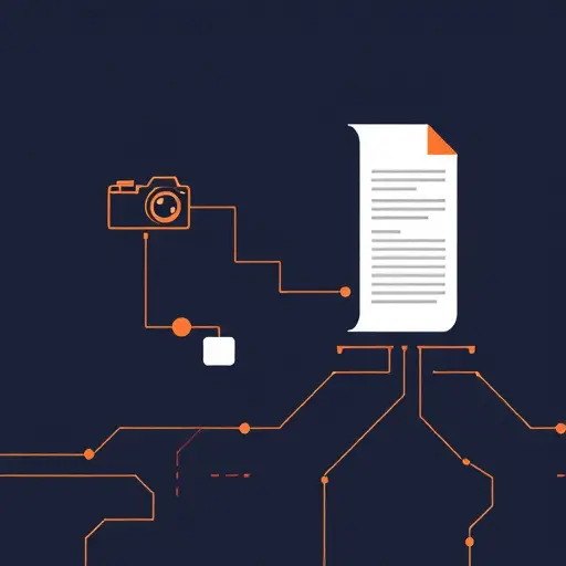 illustration of automation pipeline: image upload event -> API request -> alt/caption generation -> scheduled cron regeneration and caching, clean tech style, no text, dark theme