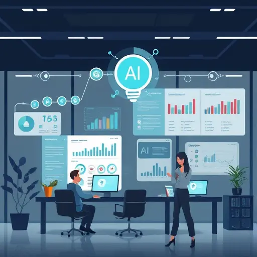 abstract illustration of AI future skills roadmap: icons for prompt engineering, data literacy, API integration, security shield, agents workflow;
