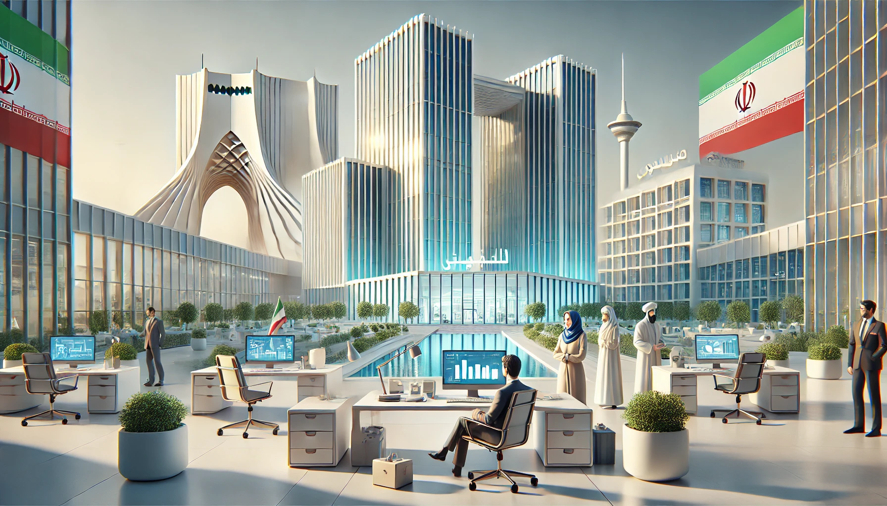 dark UI dashboard illustration of an Iranian AI platform with three abstract AI model cards (chat icon, document icon, compass icon)