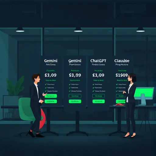 clean illustration comparing three AI assistants (Gemini, ChatGPT, Claude)