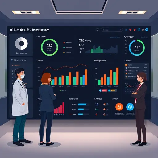 illustration of an AI assistant analyzing a lab report with medical icons (test tubes, blood drop, thyroid icon, heart)