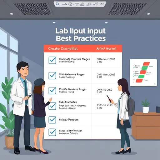 cartoon style checklist and clipboard showing structured lab test fields:
