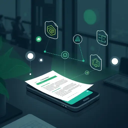 cartoon-style illustration of a smartphone scanning a paper document on a flat surface with soft, diffused lighting; icons showing reduced glare and shadows;