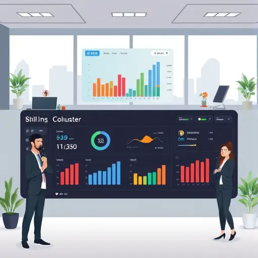 cartoon style illustration showing BMI calculation on a tablet: height scale, weight scale, and a simple formula panel;#171717