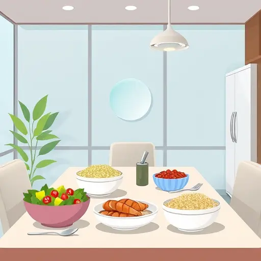 modern AI diet assistant illustration recommending healthy substitutes, animated UI cards showing low-