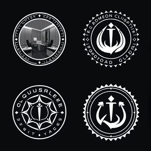 - “Persian circular stamp logo, bold sans-serif Farsi text for [نام برند], solid double ring, high-contrast black and white, vector line art, no shading, print-friendly, text-free emblem center”